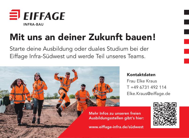 Mehr Infos zu unseren freien Ausbildungsstellen gibt's hier: www.eiffage-infra.de/südwest