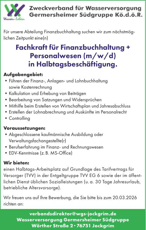 Wir freuen uns auf Ihre Bewerbung, die Sie bitte bis zum 20.03.2026richten an: verbandsdirektor@wgs-jockgrim.de