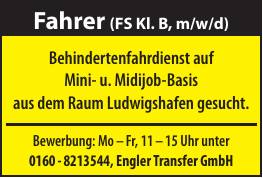 Behindertenfahrdienst auf Mini-u. Midijob-Basis aus dem Raum Ludwigshafen gesucht.