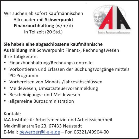 Kaufmännischen Allrounder mit Schwerpunkt Finanzbuchhaltung (w/m/d)
