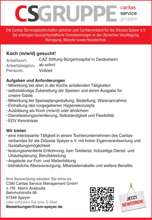 oder schicken Sie eine E-Mail: Bewerbungen@csm-speyer.de