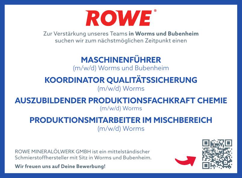 ROWE MINERALÖLWERK GMBH ist ein mittelständischer Schmierstoffhersteller mit Sitz in Worms und Bubenheim.
