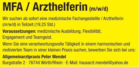 Alle AnzeigenMFA / Arzthelferin (m/w/d) in