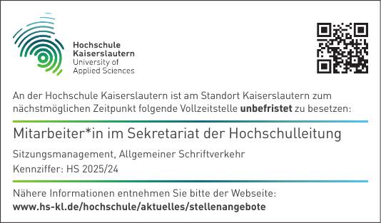 Nähere Informationen entnehmen Sie bitte der Webseite: www.hs-kl.de/hochschule/aktuelles/stellenangebote