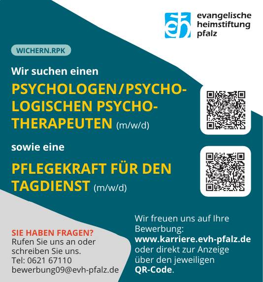 Wir freuen uns auf Ihre Bewerbung: www.karriere.evh-pfalz.de.