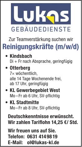 • Otterberg - 7x wöchentlich, alle 14 Tage Wochenende frei, ab 17 Uhr, geringfügig