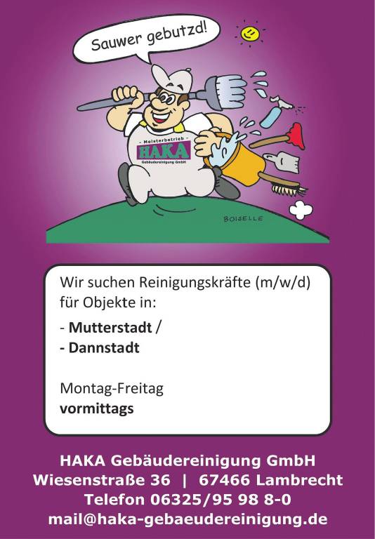 Alle AnzeigenReinigungskräfte (m/w/d) in Mutterstadt