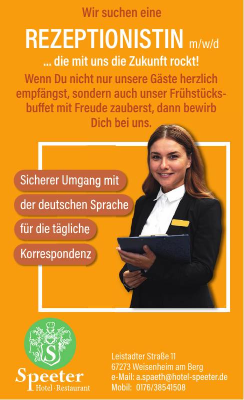 Alle AnzeigenREZEPTIONISTIN m/w/d in