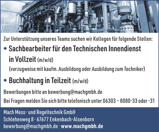 Alle AnzeigenSachbearbeiter für den Technischen Innendienst (m/w/d) in , Mitarbeiter Buchhaltung (m/w/d) in