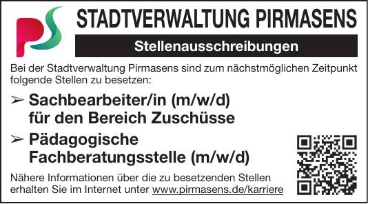 Bei der Stadtverwaltung Pirmasens sind zum nächstmöglichen Zeitpunkt folgende Stellen zu besetzen: