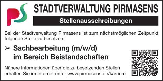 Bei der Stadtverwaltung Pirmasens ist zum nächstmöglichen Zeitpunkt folgende Stelle zu besetzen: