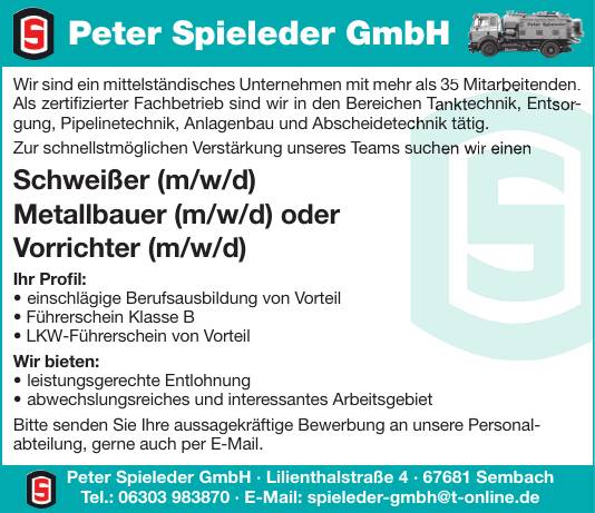 - Metallbauer (m/w/d) oder Vorrichter (m/w/d)